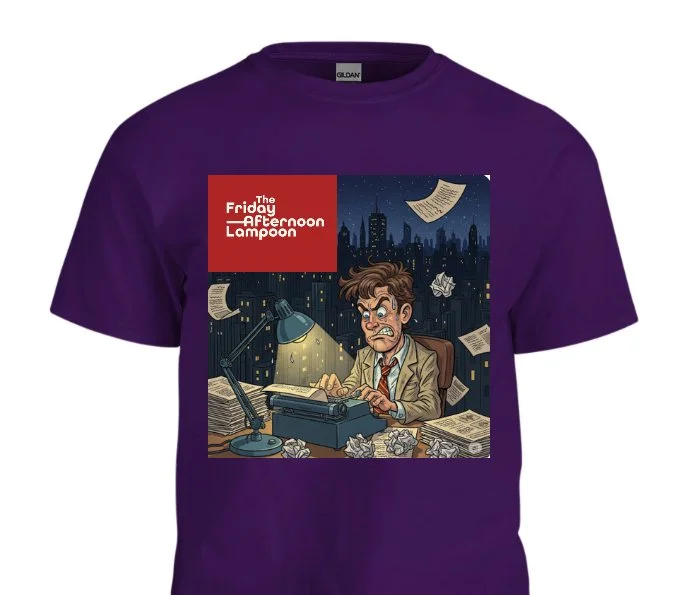 The Friday Afternoon Lampoon T-shirt. Different colors and sizes available. Support and help promote your new favorite humor magazine.